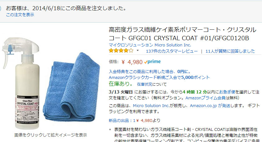 確かめたら、このコーティング剤をスマホを使いだして1年ちょっとの頃に買っていました。