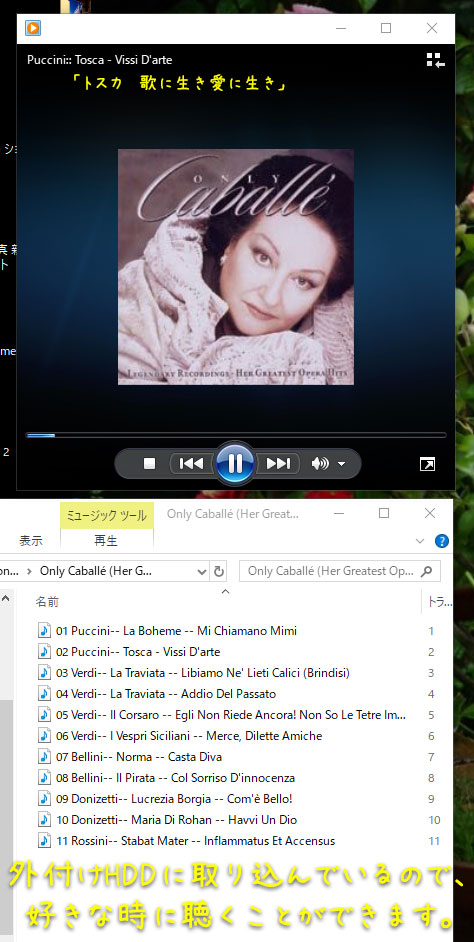 外付けのHDDに気に入った音楽はたいてい取り込んでいますから、そのフォルダを開いて聞くことができます。今も聴いていますよ。