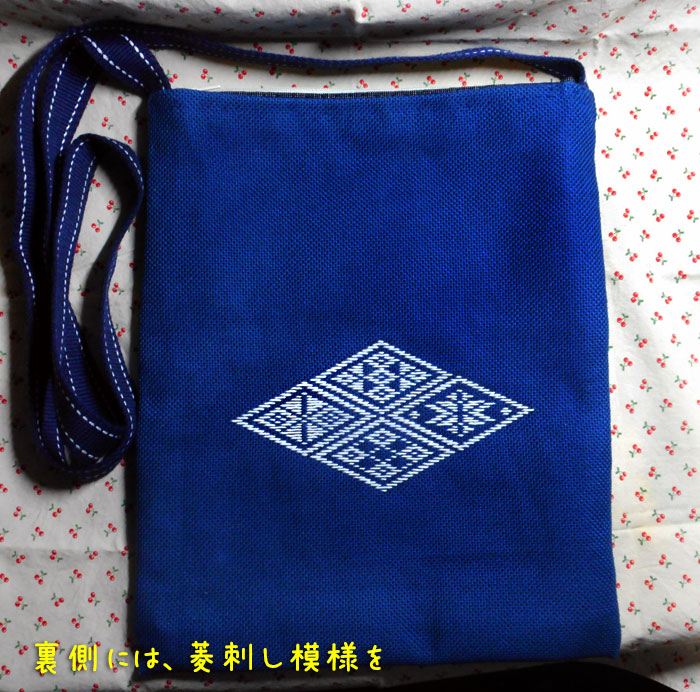 裏が無地なのは寂しい気がしたので、菱刺しを四種類。