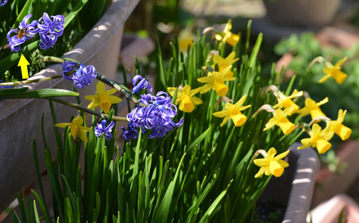 うちの庭にいたのはオスだから、産卵はしませんね。今度メスがいたら、よく見てみよう。あ、でもヒメハナバチの巣があるかどうか、それがわからない。