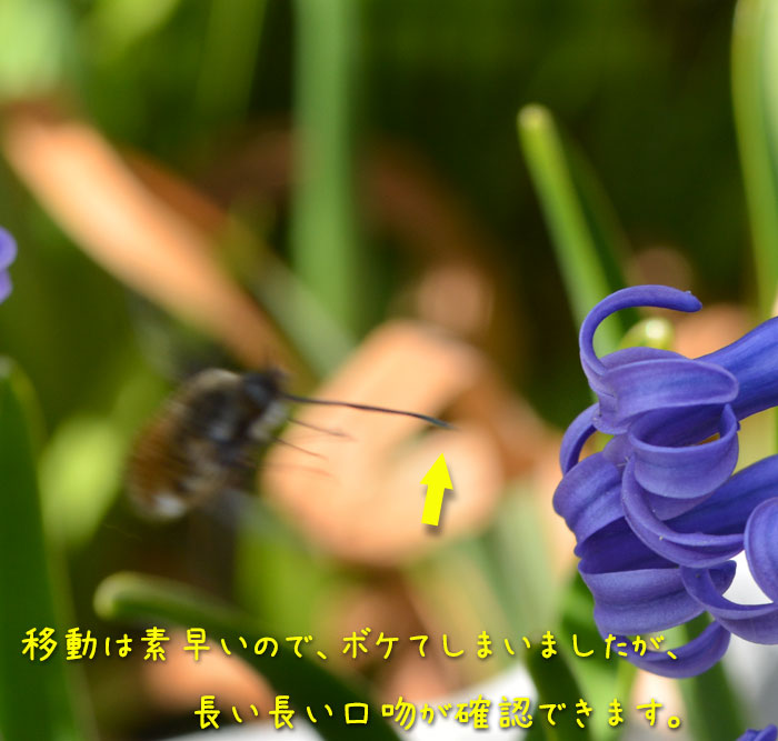 ホバリングしながら蜜を吸っている様子は、まるでハチドリみたい。
