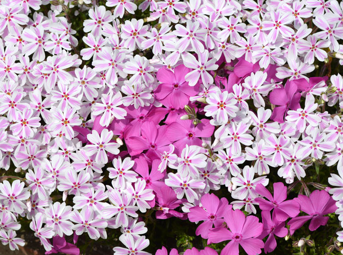 この五種類みたいですね。一番多いのが、中心が黄色の白い芝桜です。