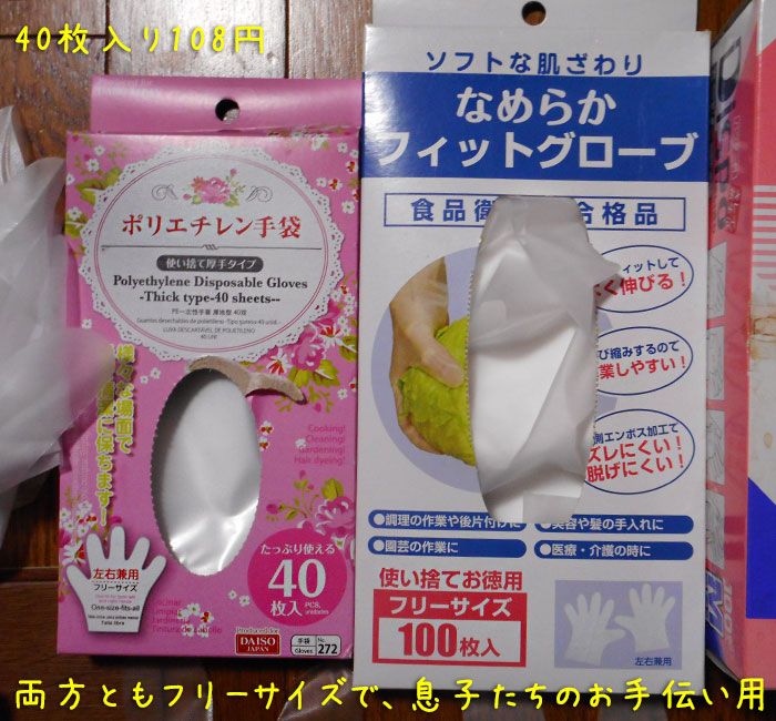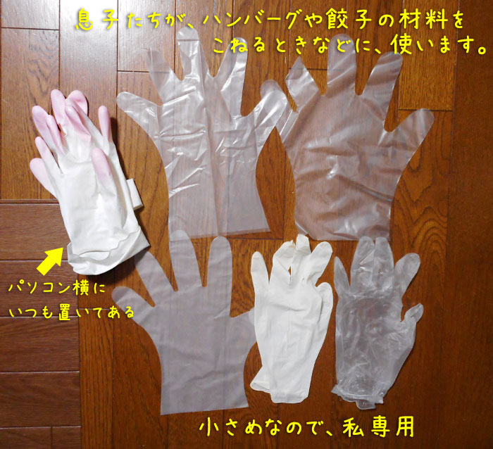 大きなサイズは、息子たち用です。ハンバーグや餃子作りの時はたいてい手伝ってもらうので、必需品。