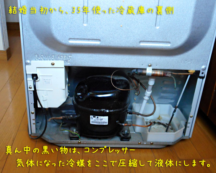 この冷蔵庫は、結婚した時に買った家電の一つ。つまり35年目。