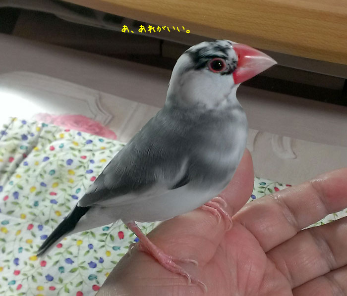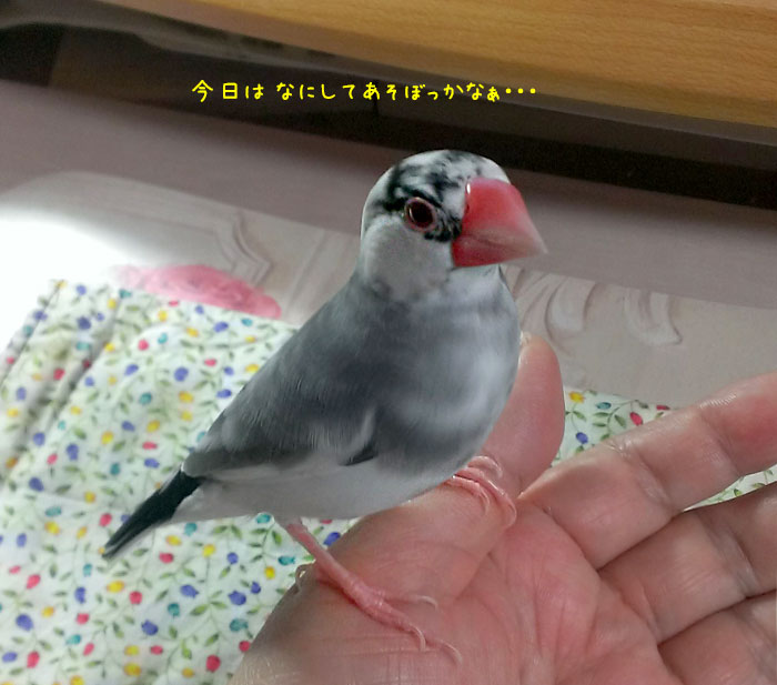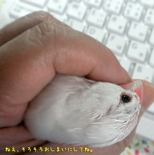 カメラを見ると怖がってジタバタするので、スマホで撮りました。