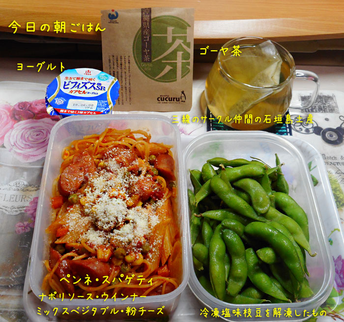 枝豆でお腹一杯になってしまったため、パスタは、半分残して、お昼に。