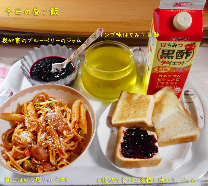収穫したブルーベリーで、昨夜ジャムを作ったので、半分は母用、半分は、私が食べるつもりで二階に持ってきました。