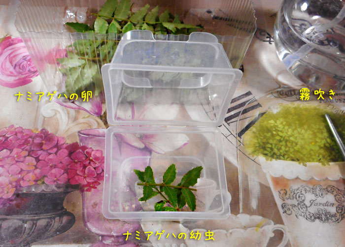 他の卵も、一斉にこんな幼虫になったら、どこにいるのか、何匹いるのかわからなくなりそうです。
