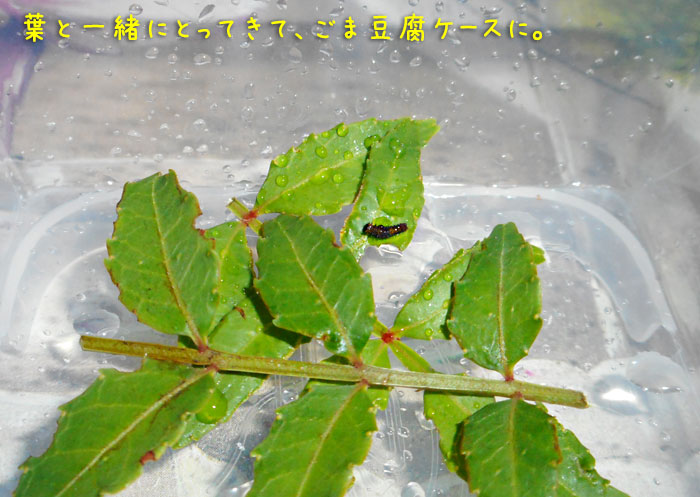 山椒の葉で育った幼虫は、ミカンの葉っぱはあまり食べないと書いてありました。甘夏の葉っぱはたくさんあるんだけどな・・・