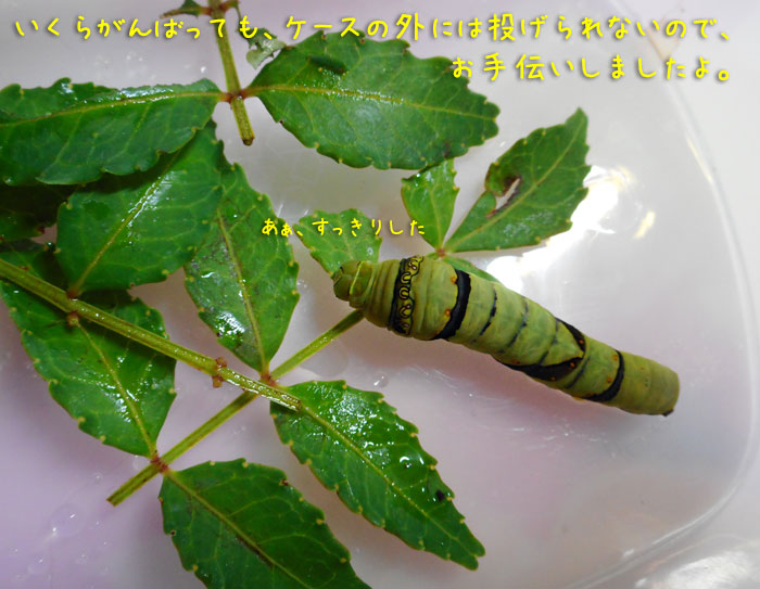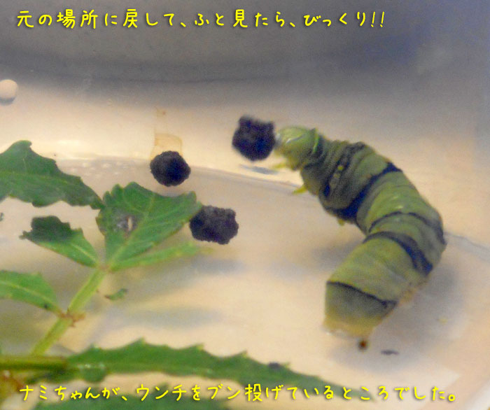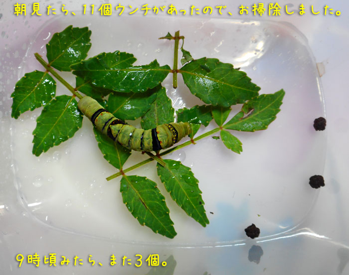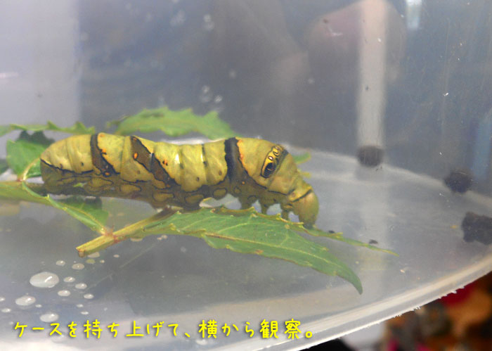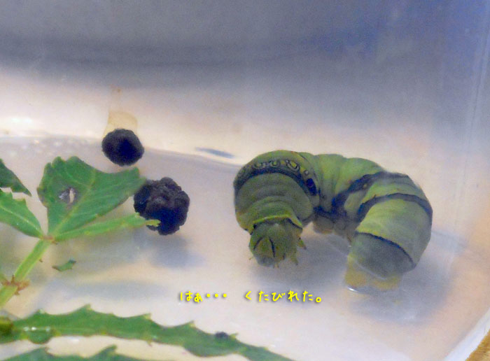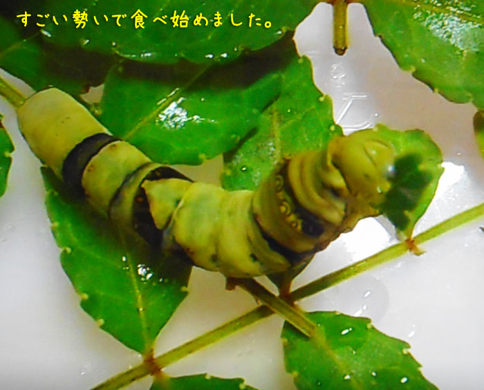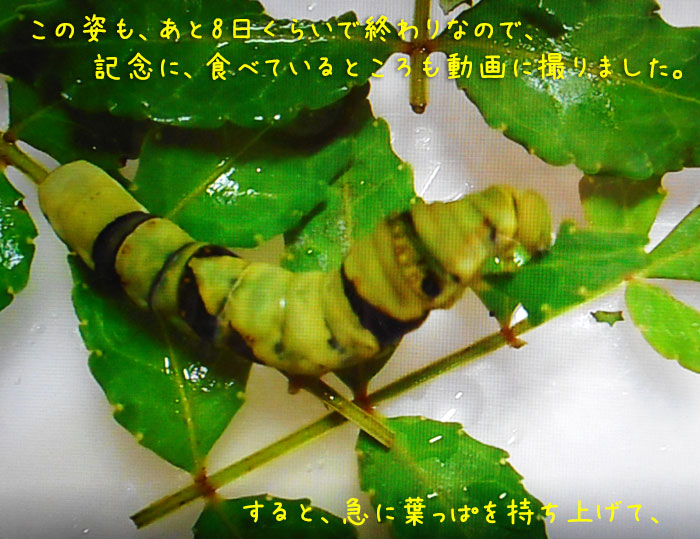 そうだ、あと8日くらいで、サナギになるから、もう食べるところは見られなくなるんだった…