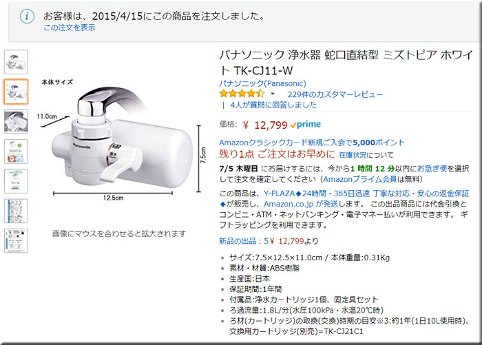 なかなか気に入っているのですが、二階でコーヒーやお茶を入れたりするときに、手軽に浄水を使うことができるように、二階の蛇口にも浄水蛇口をつけることにしたのです。