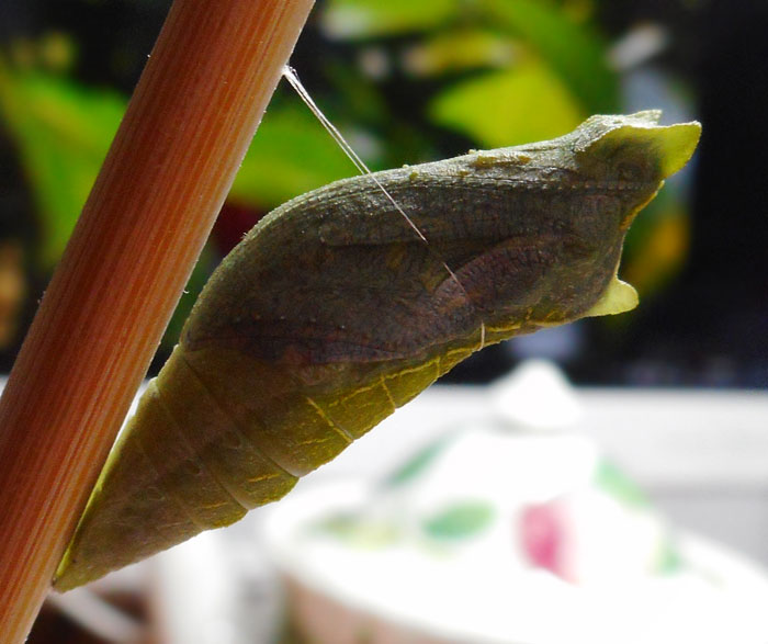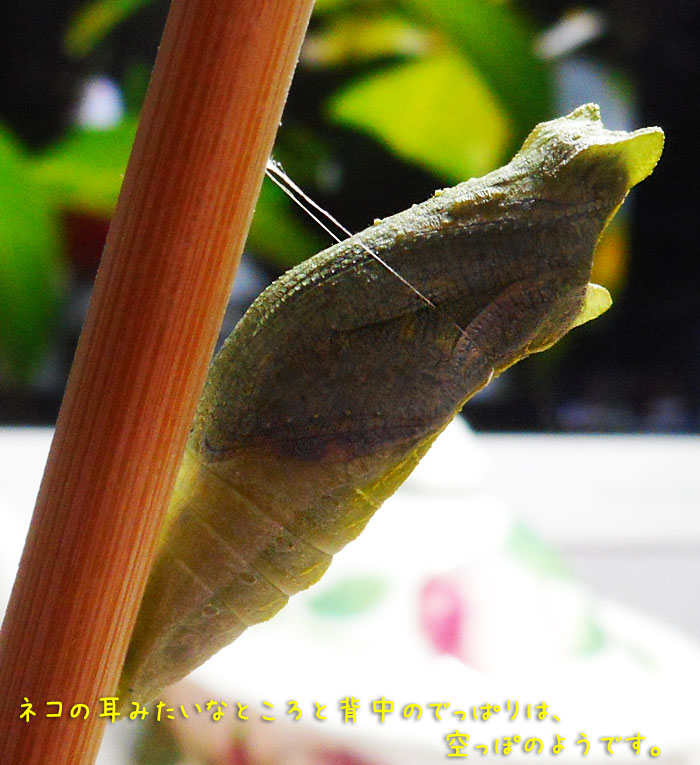 この体勢になってもらうと、翅の模様が少しだけ見えます。