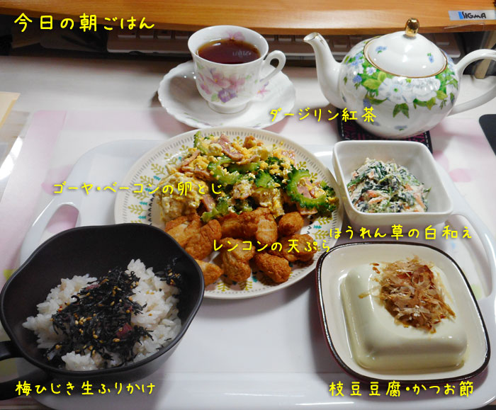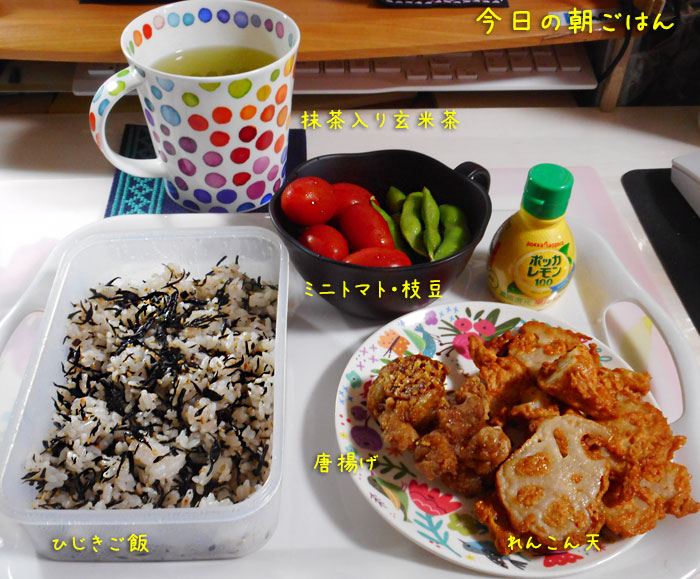 あ、そうそう、昨日の朝ごはんと昼ご飯の写真をのせるのを忘れていたので、のせます。