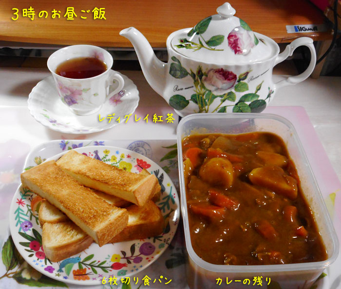昨日、みんながカレーを食べたあと、鍋に残っていたカレーを私のお弁当にしました。ちょっと量が多かった・・・