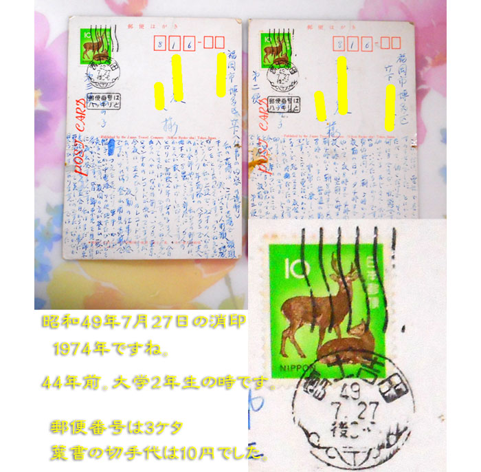 昔書いた絵手紙を探していたら、44年前に両親あてに出した私のハガキが出てきたので、久しぶりに読んでみました。