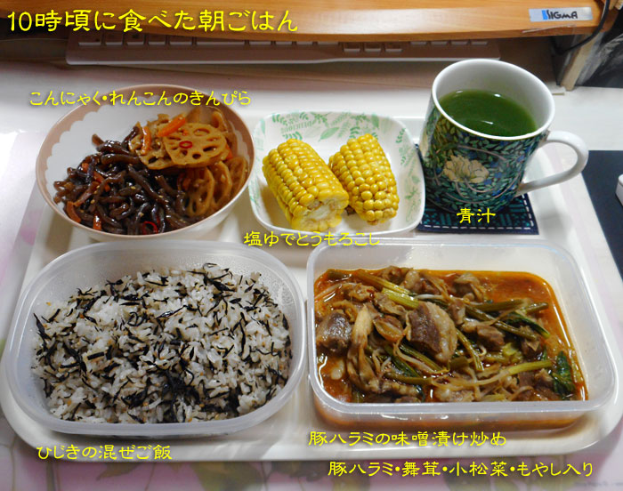 このひじきの混ぜご飯は、昨夜旦那に作ってあげた残り。本当に美味しい。きんぴらは、これでなくなりました。