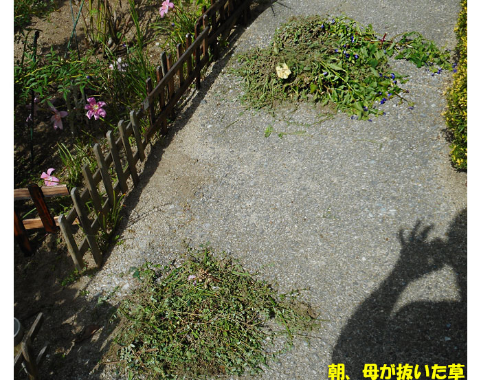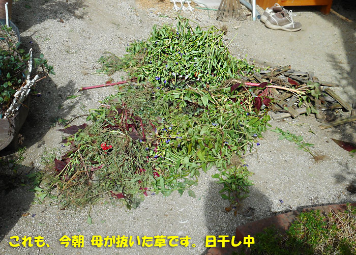 さて、これは、オカリナサークルに出かける前に撮った写真。母がとった草です。