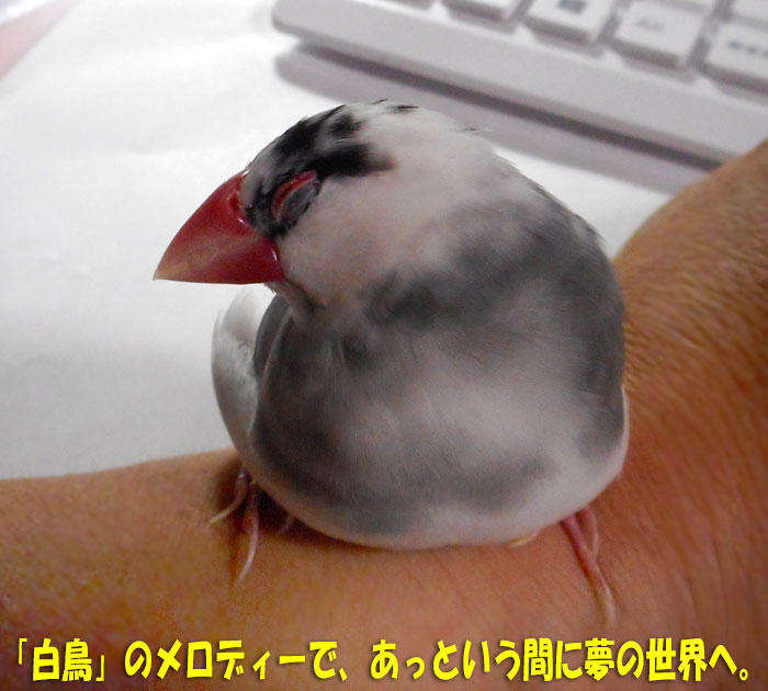 また歌うと、すぐに首をうしろに回して寝てしまいます。これは可愛いですねー。