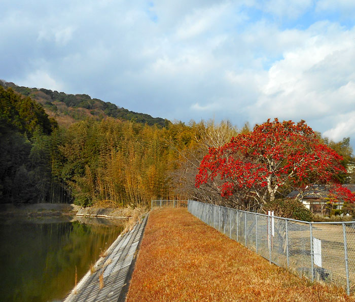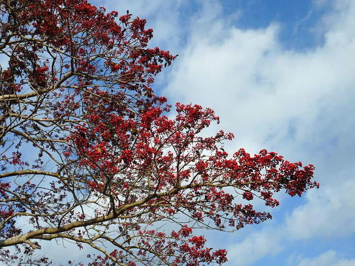 ちょっと離れてから撮ると、こんな感じ。なんという木なのでしょうね。