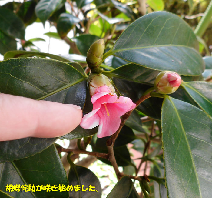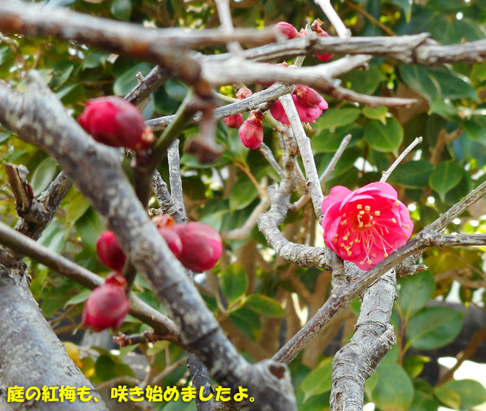 年末からずっと紅い小さなつぼみがついていたけれど、ついに咲きました。暖かいからかな?