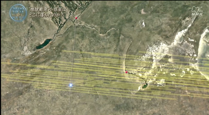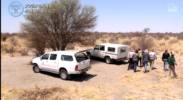 地上からは火球として防犯カメラにたまたま映っていたことから、その落下地点を計算で割り出し、研究者たちはボツワナへ。