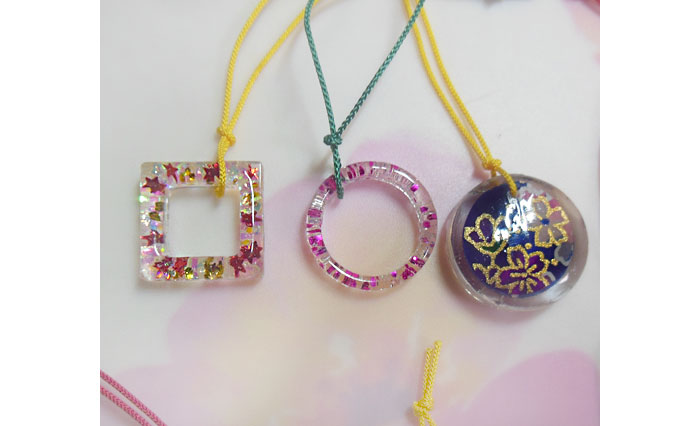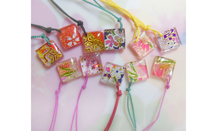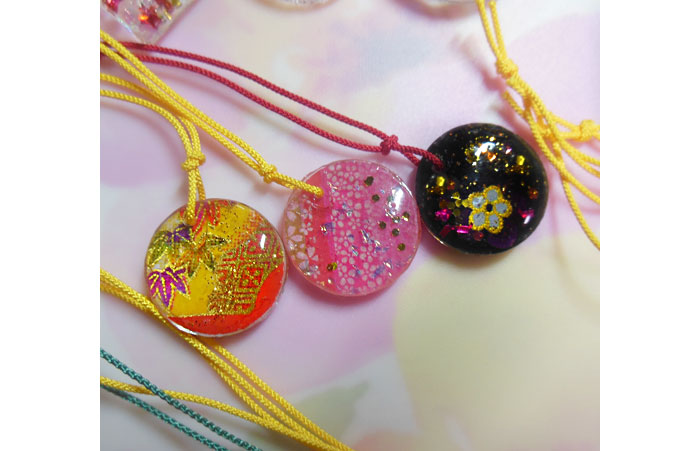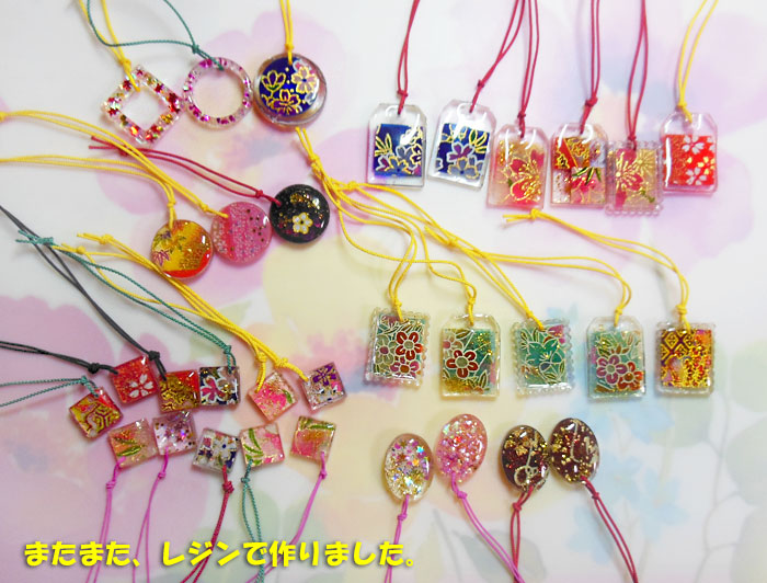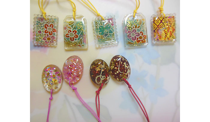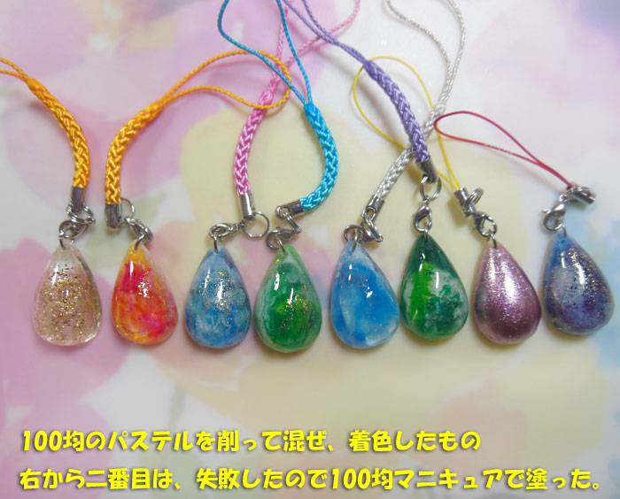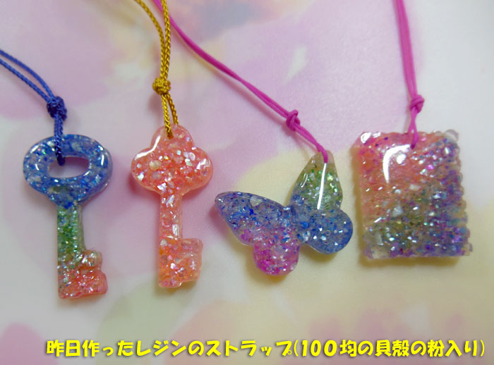 和紙を使わず、透明のレジン液にキラキラの粒とか貝殻の粉を混ぜたものも、きれいです。