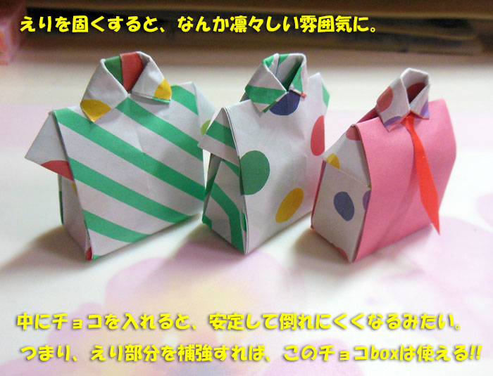 では、ここで話かわって、前回のシャツ型チョコboxの話。