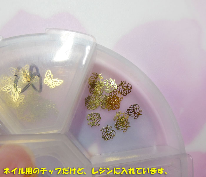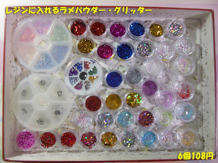 これは、レジンの中にいれたグリッター。本当はネイル用品なんだけどね。