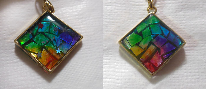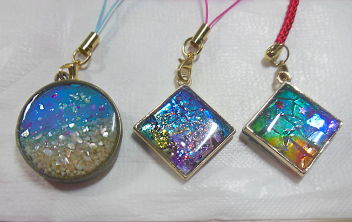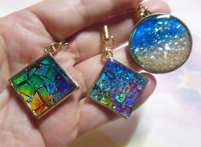右側の二つは、ブラックオパール風に作ってみたもの。