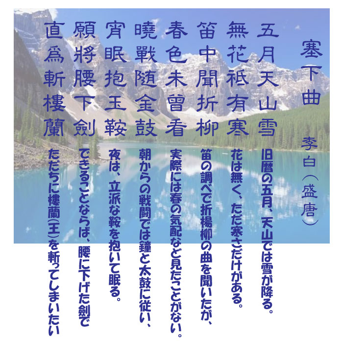 李白さんが、実際に天山へ戦いに行ったわけではなく、そんな兵士たちの気持ちになって作った詩なのだそうです。