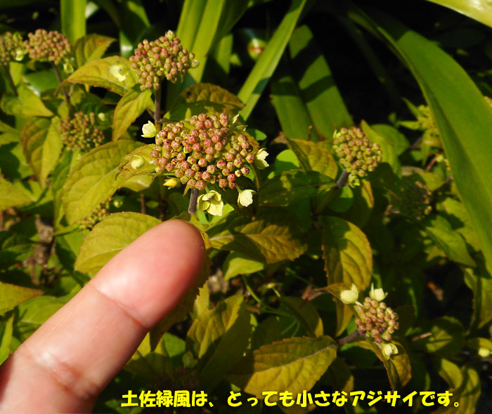 山アジサイ「土佐緑風」は、こんなに小さなアジサイです。