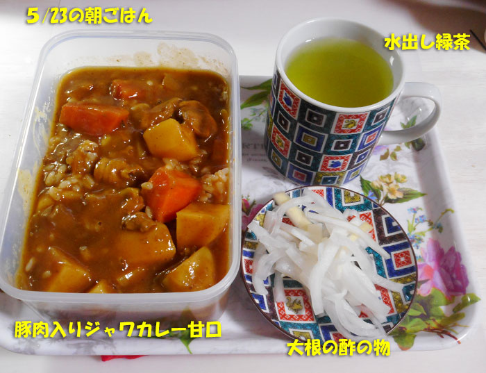 台所には鍋に入ったカレーがまだまだありますが、私は台所に降りていかずに済むように、保存容器に詰めて持って上がっています。(今日はまだ、一階に降りていません)