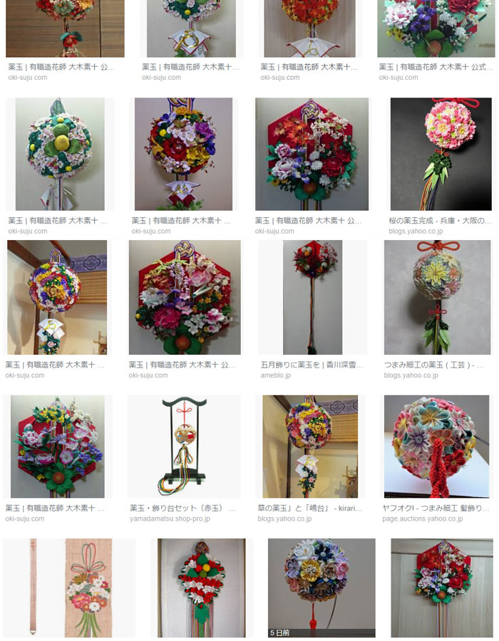くす玉は「薬玉」 と書き、元々は 錦の袋に薬草や香草、香料などを詰めて、その袋を造花などで飾りをつけて房飾りをつけた もの。