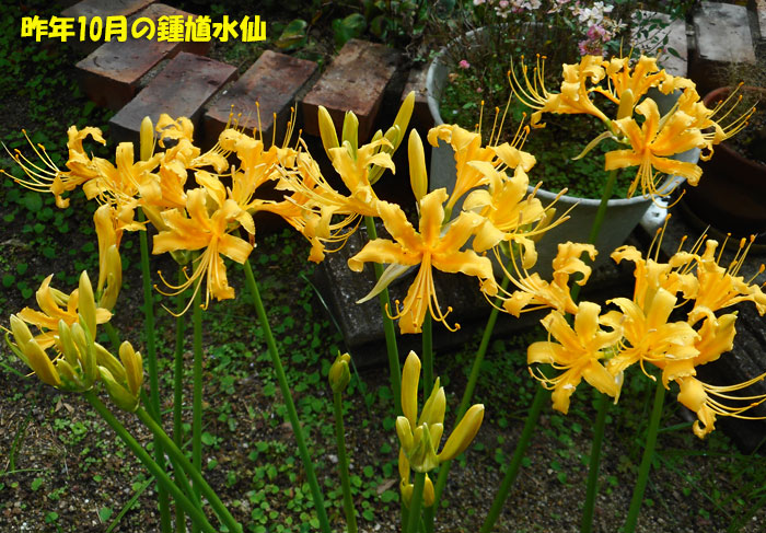秋に、この黄色の鍾馗水仙が咲くのが楽しみです。