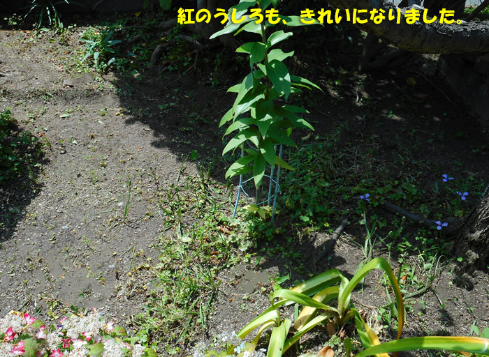 以前は、母がしゃがみ込んで、張り切って草取りしていましたけれど、今は取りやすいところが中心です。