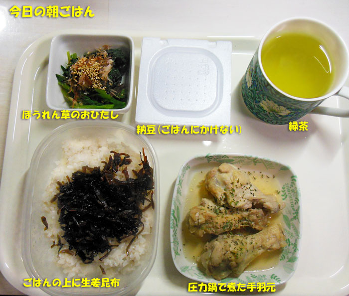 手羽元は、昨夜圧力鍋で煮ているので、身離れがよく、食べやすかった・・・