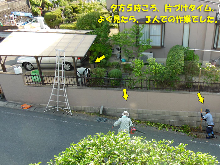 我が家の時と同じ業者さんですが、うちには二人だったのに、お隣は三人。車も、うちは大きいの一台だけだったのに、となりは大きいのと小さいのの二台。