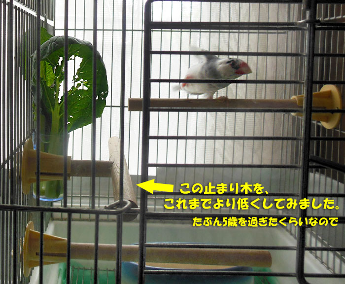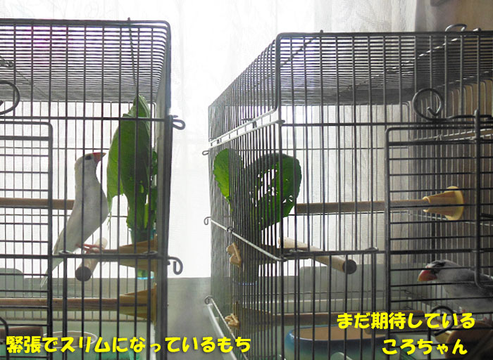 ころちゃんは、もちより1才半か2才くらい年上なんです。文鳥の寿命は7年から8年と言われているので、 たぶん5才半くらいのころちゃん