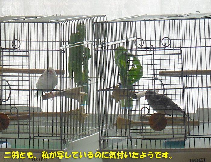 私が朝ごはんを食べ終えてしばらくしたら、何やら文鳥たちが騒がしい。