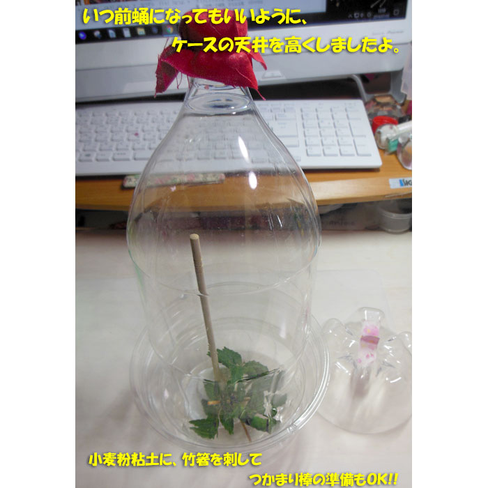 そして、サナギ用に、高い天井は、2リットルのコーラのペットボトルの上部分を使いました。