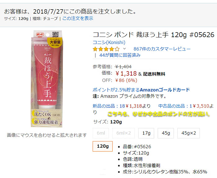 (本や電化製品の中古ならわかるけど、接着剤の中古というのが不思議)