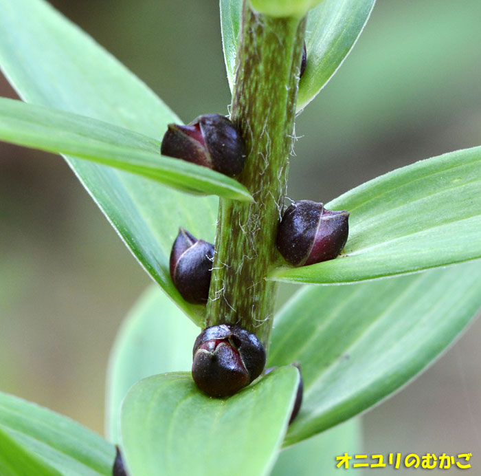 オニユリのむかご 。撮ってみたら、なかなか面白い形で、色もきれいです。