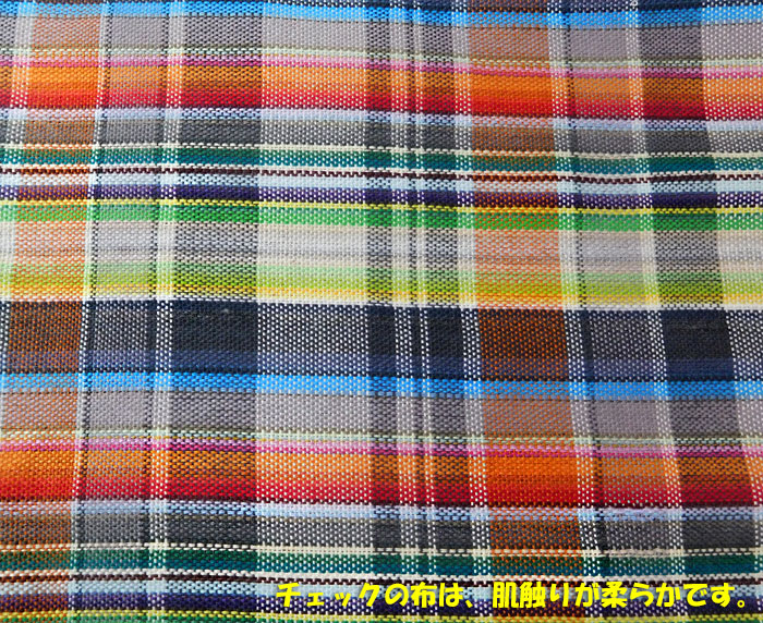 綿紬の肌触りはざらっとしているから涼しいけれど、裏地には柔らかいチェックの布を使いましたよ。