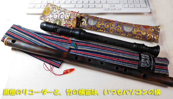 このリコーダーは、いつもパソコンの横に置いている笛のうちの一本。