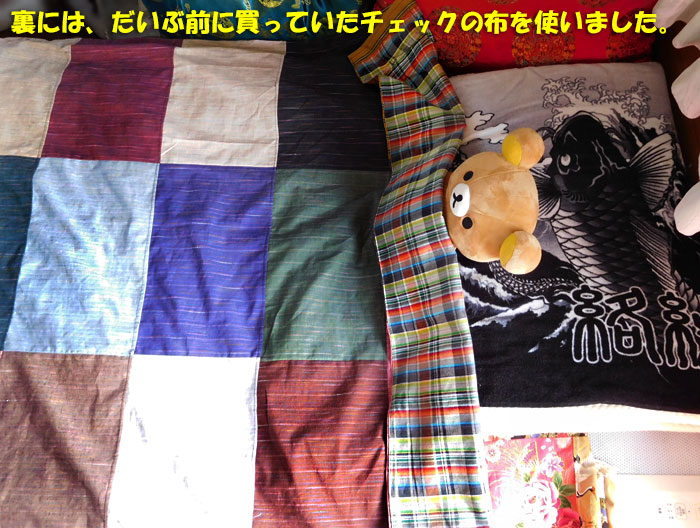 3 9枚ある綿紬の端切れのうち、18枚 を使って、また 肌掛け