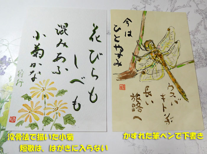 ハガキに描くと、短歌の文字は入りきらないようです。