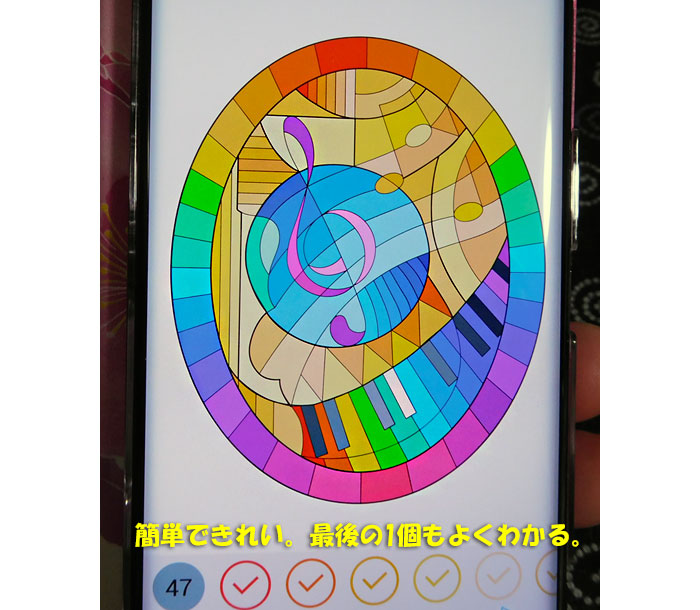 こういう図柄はとても簡単で楽しい。おまけに、どこが塗り残しなのか、すぐに見えます。