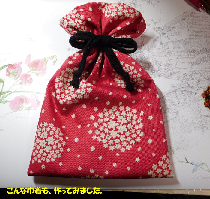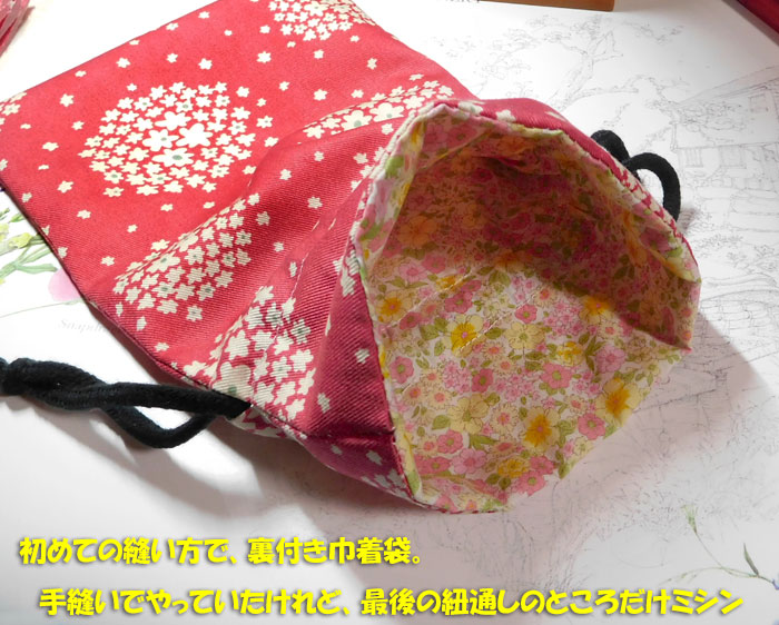 巾着はいつも作っているのだけど、これは縫い方が違います。