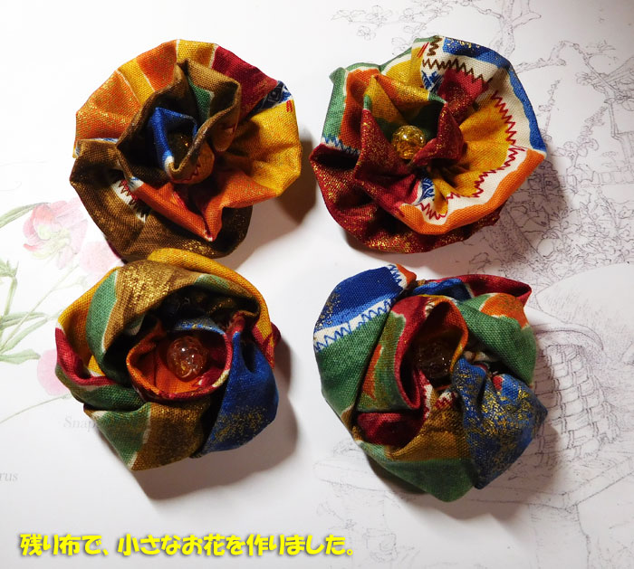 この布は、だいぶ前に、クリスマスっぽいパッチワークを作っていた頃の残り布。