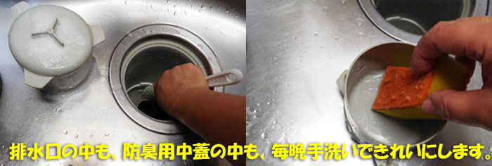 排水口の中は、いつも手を突っ込んでごしごし。毎晩やっているので、ほとんど汚れていません。
